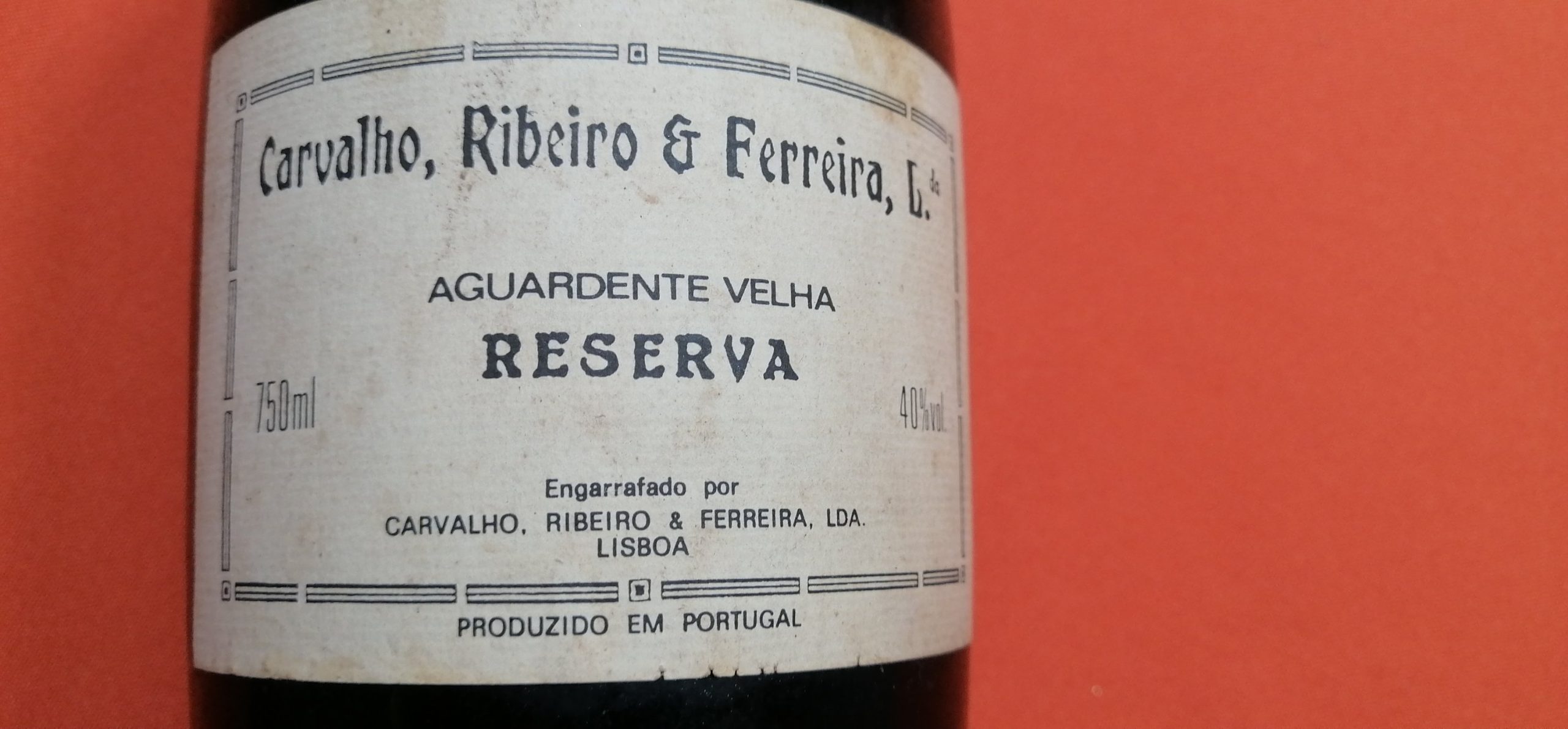 Garrafa Vintage de Aguardente Velha CRF Reserva com 40% volume de álcool