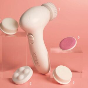 Escova de limpeza facial com 5 peças para diferentes funcionalidades. Na compra da Escova Elétrica de Limpeza – Skin Cleasing (Ref. 461), oferta: Gel de Limpeza (Ref. 514)