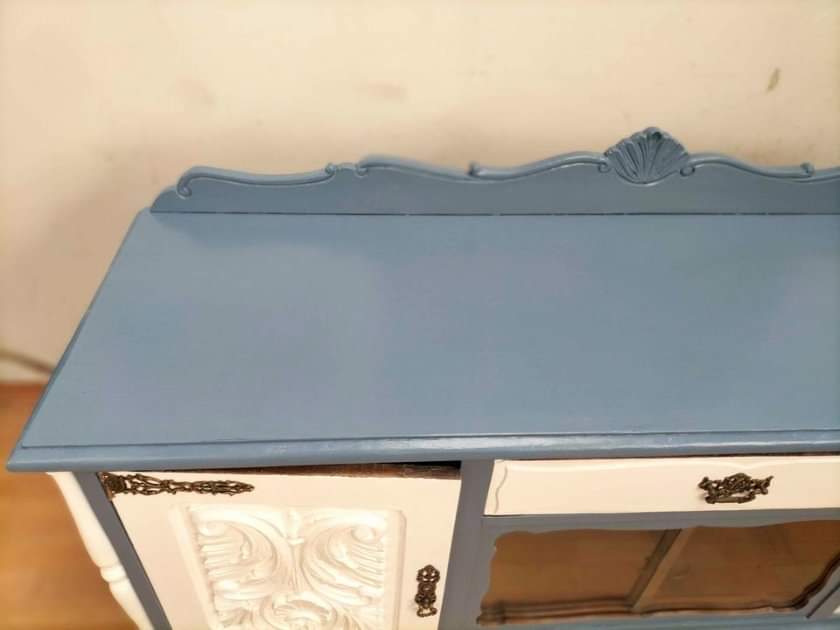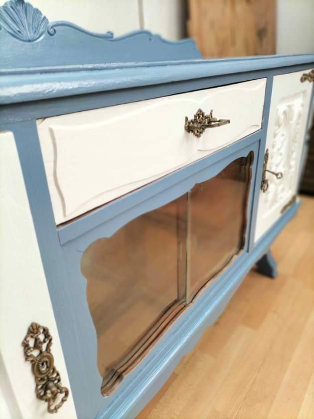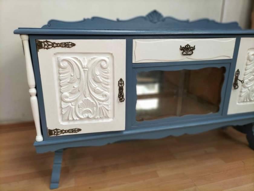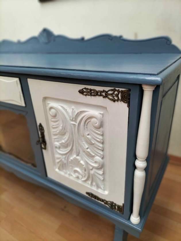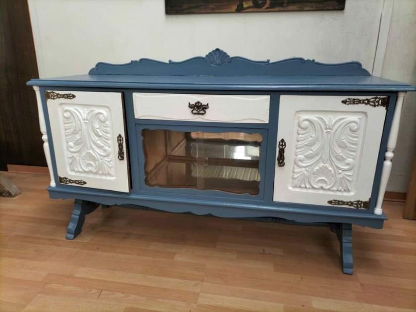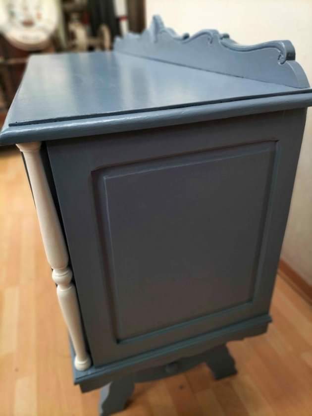 Móvel dos anos 70 restaurado a Cinza carvão e branco.