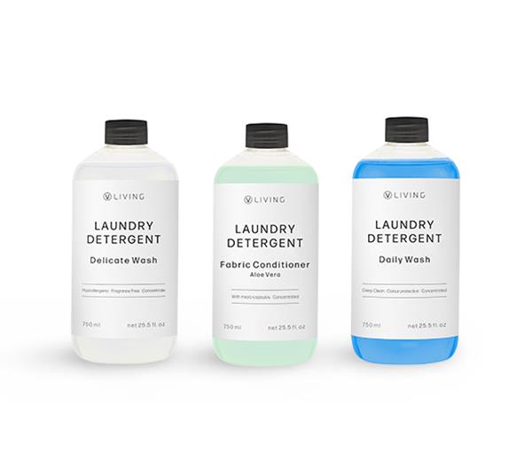 Composto por:•  Laundry Detergent Daily Wash• Laundry Detergent Delicate Wash•  Fabric Conditioner Aloe Vera
